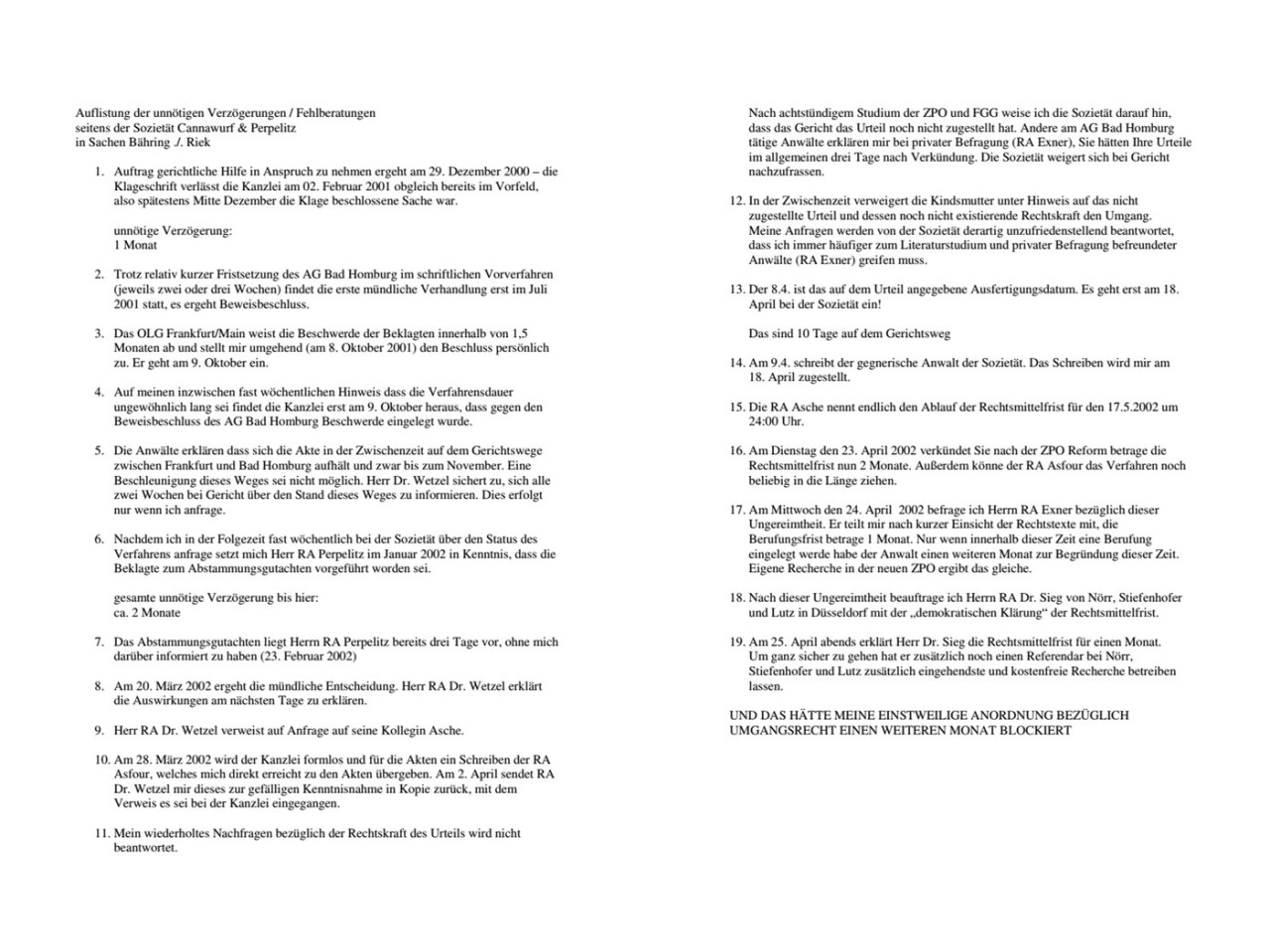 04.04.2014 10:59 Auflistung der unnötigen Verzögerungen / Fehlberatungen seitens der Sozietät Cannawurf & Perpelitz (http://www.cannawurf-wetzel.de/) in Sachen Bähring ./. Riek